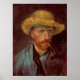 Póster Autoretrato Van Gogh com Chapéu e Pipe de Palha