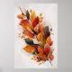 Uma abstrato de aquarela impressionante com folhas vibrantes do outono em tons de laranja, vermelho, amarelo e marrom. Essa disposição artística traz a essência da queda para qualquer espaço, com um fundo texturizado suave acrescentando um toque elegante.
