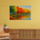 A symphony of seasonal transformation, Autumn In New England captures the fleeting brilliance of fall with cinematic intensity. A row of trees stretches across the canvas, their foliage shifting from verdant green to fiery crimson, amber, and gold—each hue a heartbeat in nature’s final crescendo before winter. The calm water below mirrors the trees with glassy precision, doubling the drama and inviting reflection, both literal and emotional.