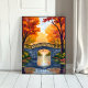 Poster Autumn Park Bridge | Fall Foliage Watercolor