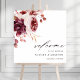 Esta placa de boas-vindas do casamento (poster) apresenta um buquê de flor de aquarela de dahlia, rosa de jardim, pénia, e grama-pampas em vermelho-burgundy, marrom, rosa-pincelado sobre folhas do outono. Para uma personalização mais avançada deste design, clique no BOTÃO FERRAMENTA DESIGN AZUL. Itens correspondentes também estão disponíveis.