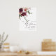 Este sinal de boas-vindas ao casamento (poster) apresenta um buquê de flor de aquarela de dahlias, rosas de jardim, e peônia em vermelho-burgundy, marrom, cor-de-rosa pincelada sobre folhas do outono. Para uma personalização mais avançada deste design, clique no BOTÃO FERRAMENTA DESIGN AZUL. Itens correspondentes também estão disponíveis.