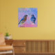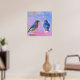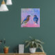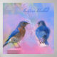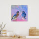 Nossa nova linha de fotografias combinada com tinta a aquarela. O fundo tem um efeito de papel aquoso texturizado, mas esta arte será impressa em papel suave. Um pássaro azul oriental macho na frente e atrás em um belo fundo lilático embelezado com derrames de aquarela. Linda!