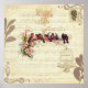 Imagem bonita de pássaros antigos no fundo de notas musicais, escrita manual com ornamentos e elementos elegantes.