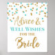 Aconselhamento e boas intenções para o sinal de noiva para chá de panela em padrão azul claro e de confete dourado. Observe que o efeito de brilho é apenas efeito fotográfico.