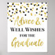 Aconselhamento e bons desejos para o sinal de formando para festa de formatura em um padrão de confete preto e ouro.