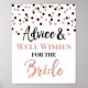 Aconselhamento e boas intenções para o sinal da noiva para chá de panela em um padrão de confete de ouro preto e rosa.