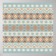 Design influenciado por padrões do estilo Aztec em uma interpretação digital moderna vetorial em cores azul, creme e terracota.