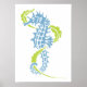 Poster Azuis-do-mar, verde limão e algas marinhas