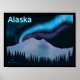 O norte acende-se numa noite fria no Alasca. A leitura de texto "Alaska" aparece em azul e branco brilhantes."