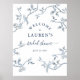 Elegante e simples Azul e branco Padrão de toile francesa de pássaros em galho de árvore Chuveiro de Noiva Cartaz de Bem-vindo.