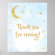 Poster Azul Dourado sobre o bebê da Lua Obrigado por vir