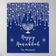 Poster Azul e Silver String Luzes Felizes Hanukkah