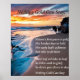 Nada Dourado Can Be é uma bela foto da costa do mar arenoso com uma areia azul legal ao longo do lado do oceano indo para o mar aberto onde você vê um lindo pôr do sol laranja e uma grande rocha à direita da costa arenosa. Este poema é escrito em texto branco e em texto preto. Nada Dourado Pode Ficar é um poema popular O bem amado poema escrito por Robert Frost em 1923 é maravilhosamente ilustrado com as cores brilhantes da água em diferentes tons de azul.