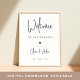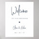 Um simples e moderno sinal de boas-vindas para ser exibido na entrada da sua cerimônia ou recepção de casamento, esta design baseada em tipografia gráfica apresenta "bem-vindos ao nosso casamento", seus nomes, e sua data de casamento, em uma mistura de roteiro escrito à mão e letras clássicas de serifa. Marinho, um clássico azul escuro.