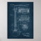 Poster de patente de violão em azul. Correspondendo itens em nossa loja.
