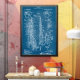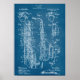 Poster de patente saxofone em azul. Correspondendo itens em nossa loja.