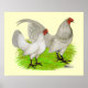Autoazul é uma cor suave e delicada encontrada em muitas variedades de frangos, incluindo este galo e galinha do Old English Game Bantam.