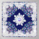 Floco de neve com o desenho de uma janela de vidro manchado de uma velha igreja europeia: uma janela rosa, com toques de uma grande variedade de cores, incluindo tons de azul, sobre um fundo azul marinho. Inlay de rochas azuis-claras (desenhada). Para um padrão de inverno antigo. Este motivo também está disponível em vermelho cardeal em minhas coleções de "rosa vermelho cardeal".