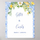 Um sinal de presente e mesa de casamento mediterrânico boêmico em azul pastel. Para inserir todas as suas informações, clique no botão personalizado. Mais designs como esta podem ser vistos na coleção da minha loja.