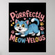 Este gráfico encantador apresenta um felpudo gato de desenho animado, listrado, de cor azul e branca, em uma posição brincalhona, aglutinante, com olhos amarelos brilhantes e uma expressão feliz e aberta. O texto em negrito acima, "Puramente MEOW-VELOUS", é renderizado em tons rosas alegres, acentuados por corações flutuantes e estampas de pata em várias cores, acrescentando ao tema alegre. O design é colocado sobre um fundo preto sólido. Download digital apenas para uso pessoal.
