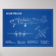 Poster B-25B Mitchell Doolittle - Avião Blueprint AD