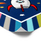 Baby room birth announcement Poster featuring modern typography and cute space elements with colorful stripes pattern border. Add all your lovely details on this easy-to-use template to make your own unique birth stats Poster.