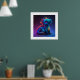 Poster é mostrado com uma impressão de arte fotográfica de um dragão de bebê colorido. Personalize este item ou comprar como está. Imagem do stock