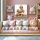 Poster Baby Girl Reading Tan Puppy Red Mushroom
