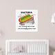 Poster de humor microbiológico memorável para microbiólogos e bacteriologistas apresentando uma célula procariótica/bactéria junto com o seguinte truísmo científico dizendo "Bactérias não podem viver com algumas delas e não podem viver sem algumas delas". Ponto de discussão para todos que sabem da espada de dois gumes que as bactérias podem ser!