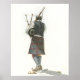 Poster com pintura aquosa de bagpiper em kilt de cheio caminhando pela praia. Trabalho de arte: Aquarela e grafite no lápis. Copyright Dominic A. White. Todos os direitos reservados.