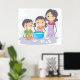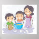 Uma família cozinhando na cozinha com mãe e as crianças. Esta design parece realmente eficaz nestes Poster