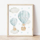 Poster Balão de Ar Quente Azul, Urso, Coelho, Enfermeiro