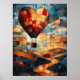 Esta trabalho de arte de inspiração em vidro, encantadora, capta um balão de ar quente em forma de coração flutuando sobre um sereno, um rio enrolamento e colinas rolantes. Os tons quentes de vermelho, laranja e ouro contrastam lindamente com azuis legal, evocando uma sensação de romance e aventura pacífica. Uma peça decorativa perfeita para sonhadores, viajantes e amantes da arte.