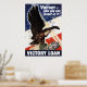 Esta vintage poster da Segunda Guerra Mundial apresenta uma águia careca em uma pilha de laços de guerra, com um fundo vermelho, branco e azul. Ele declara, "Vitória — agora você pode investir nela! Empréstimo vitorioso". Celebrar a História Americana e WW2 com este produto de poster de guerra vintage restaurado digitalmente da "The War Is Hell Store". Quer mais produtos militares e históricos? Check-out