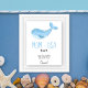 Um pequeno a caminho com este convite de chá de fraldas sob o tema do mar, apresentando baleia bebê em aquarelas moles azuis.
