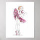 Cores de água e pintura de tinta de bailarina em tutu cor-de-rosa.
