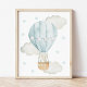 Poster Baloão Azul, Elefante, Estrelas, Berçário Menino