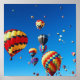 Balões de ar quente flutuantes coloridos flutuando no céu azul.