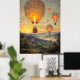 Poster Balões de ar quente no nascer do sol no estilo imp