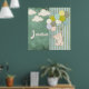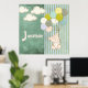 Cartaz de bebê doce com ursinho levantado por balões no céu. Personalize com o nome do seu bebê. Isso será tão fofo no quarto do bebê.
