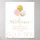 Bem-vindos a sua convidada com esta bela placa de boas-vindas ao chá de fraldas moderno. Este design poster apresenta tipografia na moda e balões com confetti no tema ouro e cor rosa. Condecoração perfeita para um chá de fraldas feminino. Convites e suprimentos de festa estão disponíveis no meu compro BaraBomDesign.