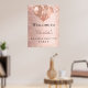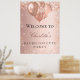 Um cartaz de boas-vindas para uma despedida de solteira glamorosa. Um fundo dourado rosa decorado com brilhos e balões falsos. Personalize e adicione um nome.