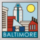 Uma paisagem urbana simplista e colorida do porto interior de Baltimore.
