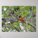 Um homem Baltimore Oriole sentado na minha árvore de rebentos. O pássaro recebeu seu nome da semelhança das cores masculinas com as do casaco de armas de Lord Baltimore.