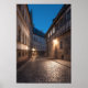 Foto noturna da histórica estrada de pedra calcária "Domplatz" em Bamberg, Alemanha. Foto © Sebastian Worm