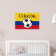 A bandeira da Colômbia, 3 bandas, amarela, azul e vermelha. Por cima, está um desenho de uma bola de futebol preto e branco.