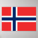 A bandeira norueguesa é uma cruz azul-nórdica branca num campo vermelho. As cores usadas na bandeira são azul, vermelho, branco. A proporção da bandeira norueguesa é de 8:11. O pavilhão da Noruega foi adotado em 1821. O primeiro uso do atual design de bandeira foi em 1821. A última mudança para a atual design da bandeira norueguesa foi em 1899.