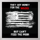 Expresse sua consciência anti-guerra com este pôster da bandeira americana opondo-se à guerra e apoiando a alimentação dos famintos. Apresenta uma bandeira dos EUA angustiada em estilo de arte grunge com slogan "Eles têm dinheiro para as guerras, mas não podem alimentar os pobres."