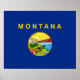 Esta design apresenta a bandeira estadual de Montana, que é um estado no noroeste dos Estados Unidos. A metade ocidental de Montana contém numerosas cadeias montanhosas. Cordilheiras menores são encontradas em todo o estado. No total, 77 faixas nomeadas fazem parte das Montanhas Rochosas. A metade oriental de Montana é caracterizada por terrenos de pradarias ocidentais e pântanos. Montana é confinada por Idaho a oeste, Wyoming a sul, Dakota do Norte e Dakota do Sul a leste e às províncias canadianas de British Columbia, Alberta e Saskatchewan a norte. Montana tem vários apelidos não oficiais, como "Big Sky Country" e "The Treasure State", e slogans que incluem "Terra das Montanhas Luminosas" e "O Último Melhor Lugar". O lema estatal de Montana é "Oro y Plata", que é espanhol para "Dourado e Prata". Cerca de 13 milhões de turistas visitam anualmente o Parque Nacional Glacier, o Parque Nacional de Yellowstone, a autoestrada de Beartooth, o lago de Flathead, o Grande Sky Resort e outras atrações em Montana. A capital de Montana é Helena, enquanto a maior cidade é Billings. Outras grandes cidades de Montana incluem: Missouri, Excelente Falls, Bozeman, Butte, Kalispell, Havre, Anaconda, Miles City, Belgrave, Livingston, Laurel, Whitefish, Lewistown, Sidney, Glendive, Columbia Falls, Polson, Hamilton, Dillon, Hardin, Glasgow, Deer Lodge, Cut Bank, Libby, Wolf Point, Conrad, Colstrip, Red Lodge, Malta e East Helena.